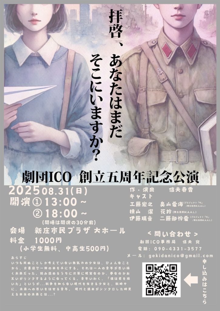 公演詳細 期間 2025年10月12日(日) 会場 新庄市民文化会館 脚本 遠藤雷太(エンブロ) 演出 近江正人 料金 1,500円 (高校生以下無料) タイムスケジュール 13:00 開場14:00 開演 購入方法 新庄市民文化会館 0233-22-7029 新庄市民プラザ ... -