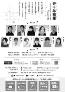 | お問合わせ・チケット予約 | http://www.quartet-online.net/ticket/thousandyears TEL:090-2363-3628 E-Mail:21kkakudo@gmail.com(弐十壱鶴堂) |