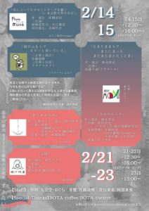 2月14〜15日・21〜22日 12:30〜/16:00〜 2月23日 13:00〜 |
